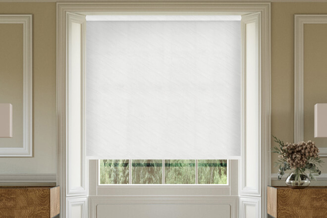 Thanks to its barely there pattern which repeats across the fabric for a textured finish, this white blind can complete the look of any room in your home. Its beautiful dim out fabric allows soft light to filter through when closed during the daytime creating a calming and peaceful ambience.
