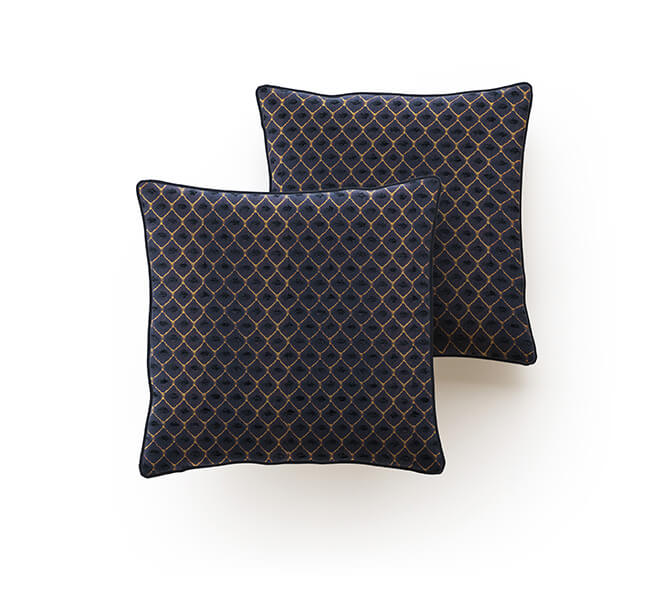 Augustus Blue Patterned Faux Silk Chenille Cushion