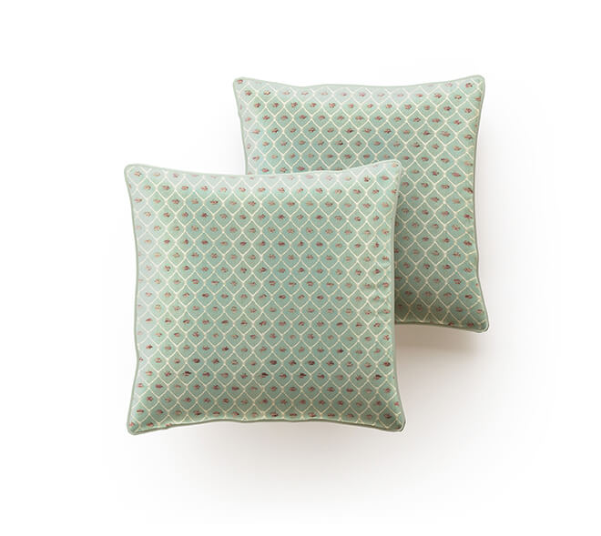 Augustus Duck Egg Patterned Faux Silk Chenille Cushion